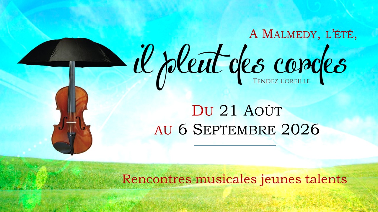 Depuis 2013, la cour intérieure (semi-couverte) du monastère de Malmedy dit « Malmundarium » accueille le festival « Il pleut des cordes ». Ce havre de paix d’une beauté simple et à l’acoustique exceptionnelle séduit tant les musiciens les plus exigeants que les oreilles les plus sensibles. Le temps de quelques soirées d’été, la musique éclabousse de merveilleux les murs de pierre de ce vieux monastère qui devient le théâtre de rencontres musicales inattendues, précieuses et rares. Rejoignez-nous pour partager ces moments uniques. Votre chaleureuse présence est le soutien essentiel de notre projet.